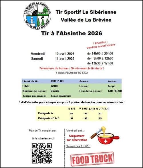 - Inscription pour la fondue => tir.siberienne@gmail.com
